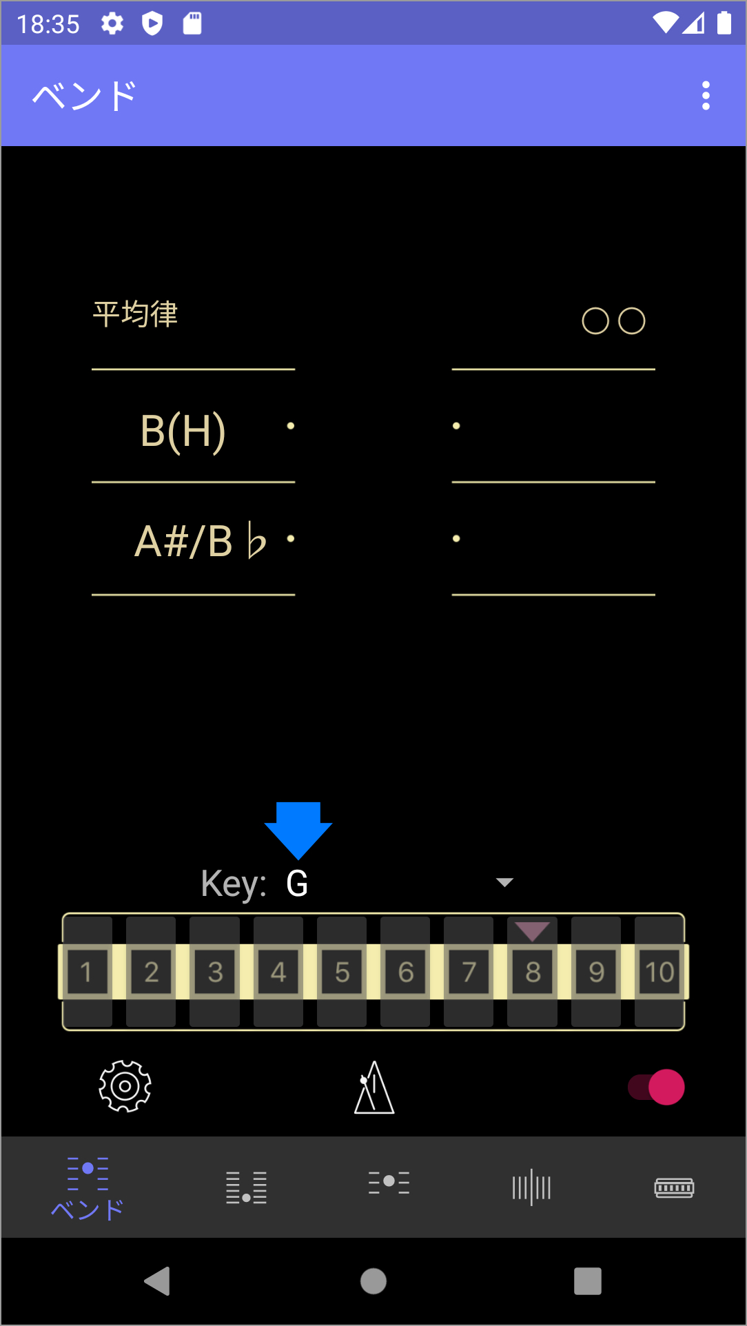 マニュアルモードではタッチをすると音がでますので、音程の確認ができます。