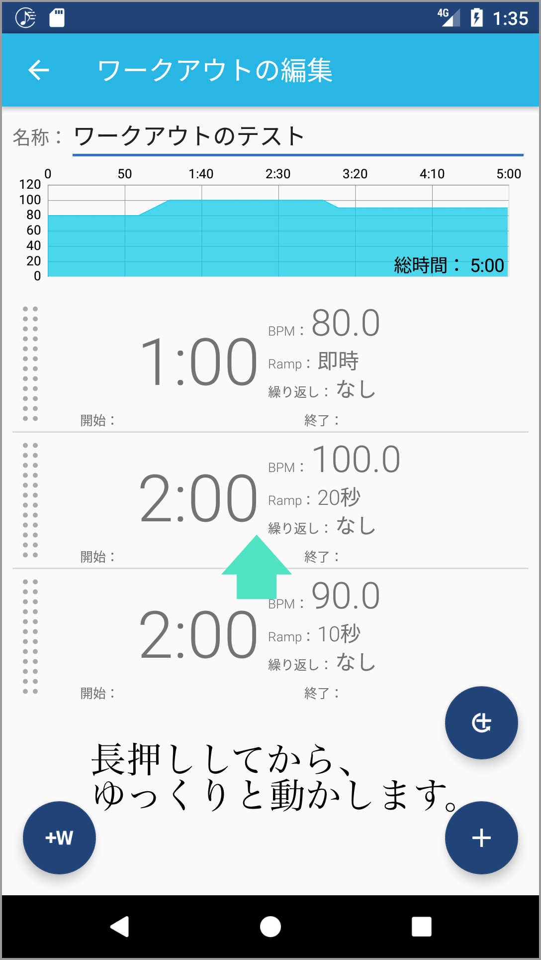 「内容」の項目に、テンポ、パターン、タイムが設定されます。