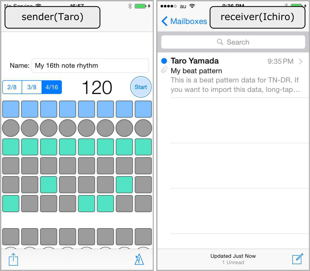 ◆The rhythm pattern that you made, you can send to your friend via AirDrop or email.